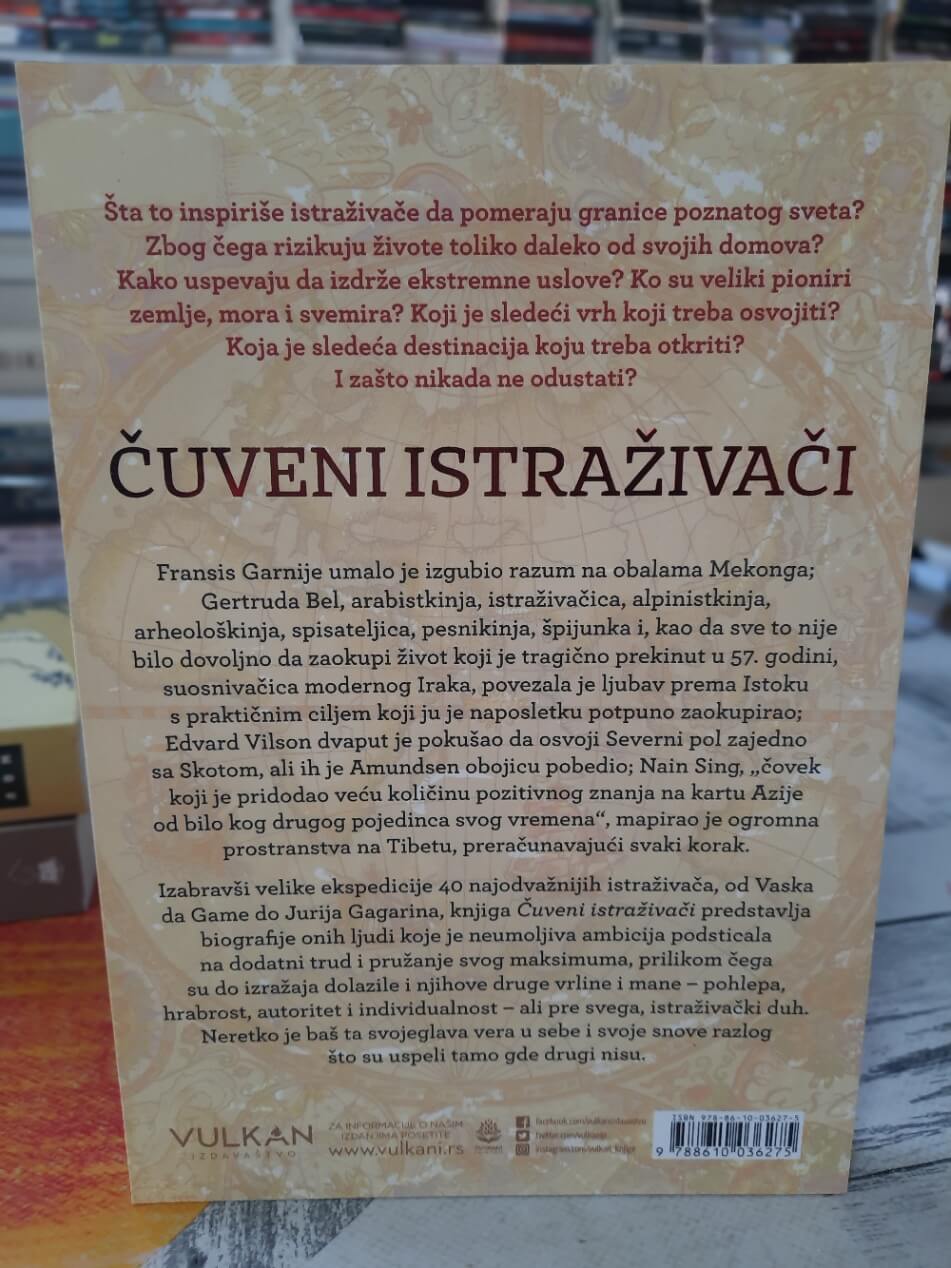 Šta to inspiriše istraživače da pomeraju granice poznatog sveta? Zbog čega rizikuju živote toliko daleko od svojih domova? Kako uspevaju da izdrže ekstremne uslove? Ko su veliki pioniri zemlje, mora i svemira? Koji je sledeći vrh koji treba osvojiti? Koja je sledeća destinacija koju treba otkriti? I zašto nikada ne odustati?Fransis Garnije umalo je izgubio razum na obalama Mekonga; Gertruda Bel, arabistkinja, istraživačica, alpinistkinja, arheološkinja, spisateljica, pesnikinja, špijunka i, kao da sve to nije bilo dovoljno da zaokupi život koji je tragično prekinut u 57. godini, suosnivačica modernog Iraka, povezala je ljubav prema Istoku s praktičnim ciljem koji ju je naposletku potpuno zaokupirao; Edvard Vilson dvaput je pokušao da osvoji Severni pol zajedno sa Skotom, ali ih je Amundsen obojicu pobedio; Nain Sing, „čovek koji je pridodao veću količinu pozitivnog znanja na kartu Azije od bilo kog drugog pojedinca svog vremena“, mapirao je ogromna prostranstva na Tibetu, preračunavajući svaki korak.