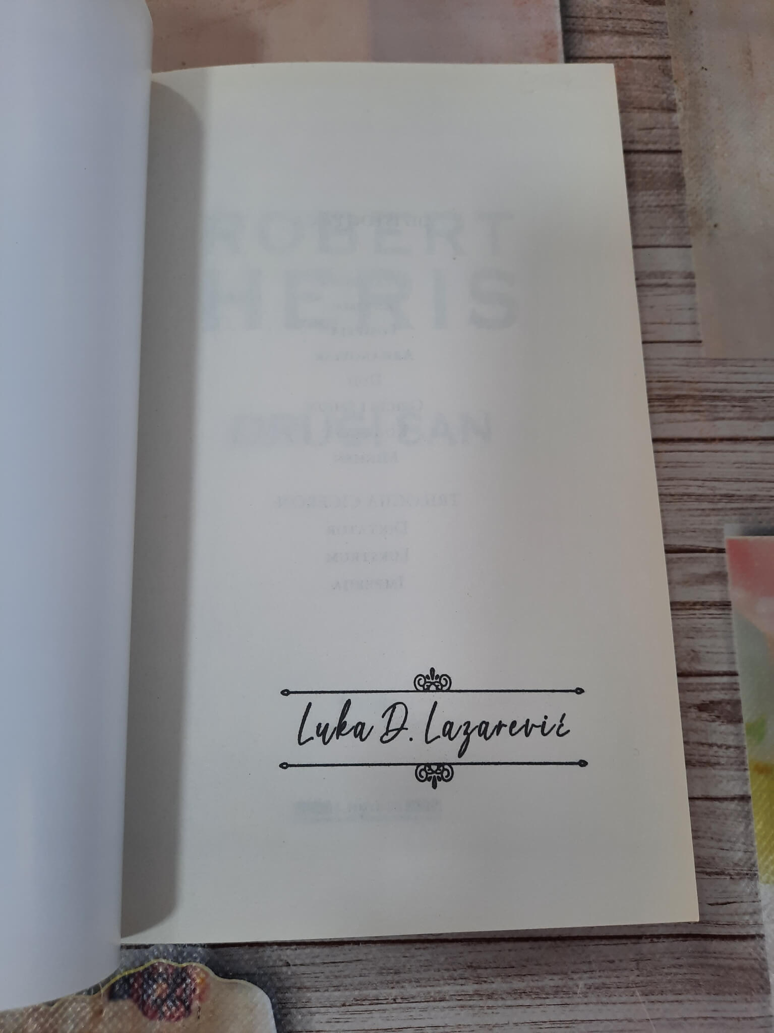 • Godina je 1468, a mladi sveštenik Kristofer Ferfaks stiže u udaljeno selo da sahrani svog prethodnika. Ono što izgleda kao istorijski roman ubrzo se pretvara u neobičnu i veoma napetu priču o zabranjenim knjigama, kostima pronađenim u okolini sela i tajnama koje menjaju sve što junak veruje da zna o svetu. Robert Heris ovde spaja istorijsku atmosferu, distopijsku ideju i misteriju sa jednim od svojih najzanimljivijih zapleta.