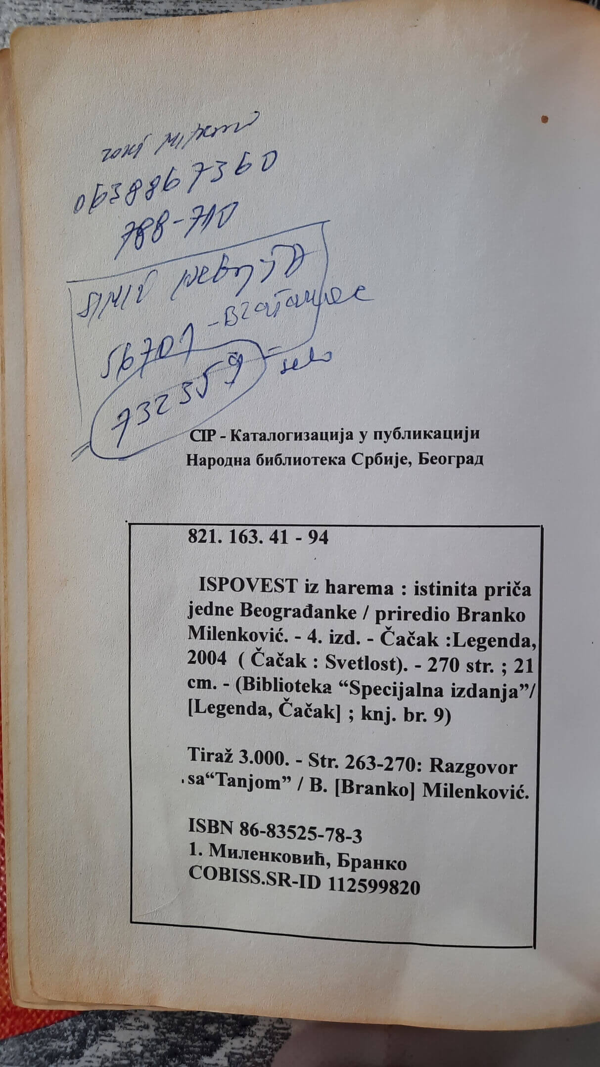Ispovest iz harema – Branko Milenković