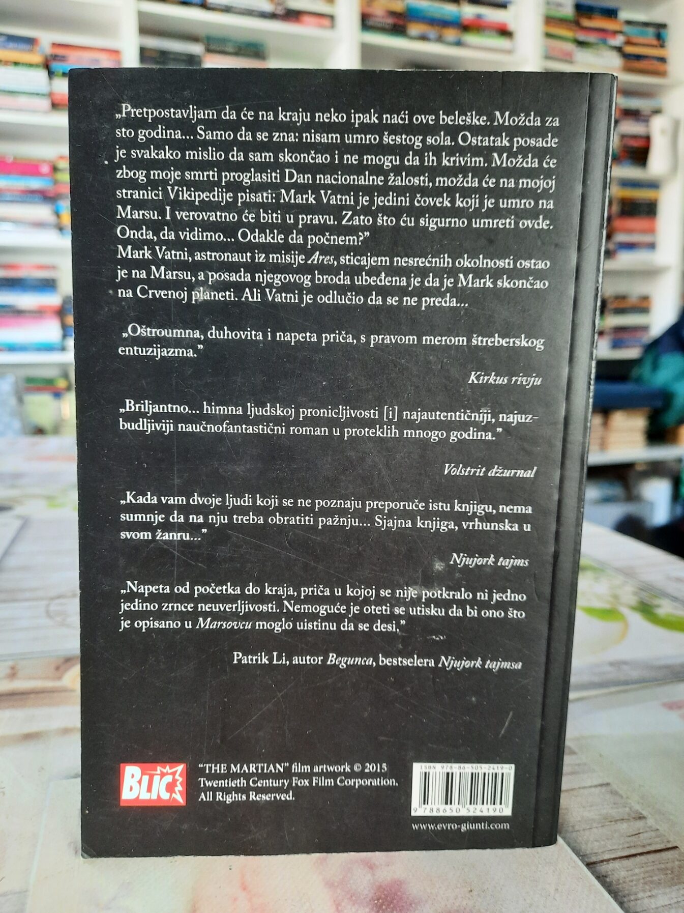 Uz puno crnog humora i „inženjerskog“ pristupa problemima, Mark improvizuje iz dana u dan: koristi ono što ima u bazi, rešava kvarove, pravi planove i vodi beleške koje postaju njegov jedini način da sačuva razum. Paralelno, na Zemlji NASA pokušava da shvati šta se dogodilo i kako da ga vrati kući, dok vreme neumoljivo curi.
