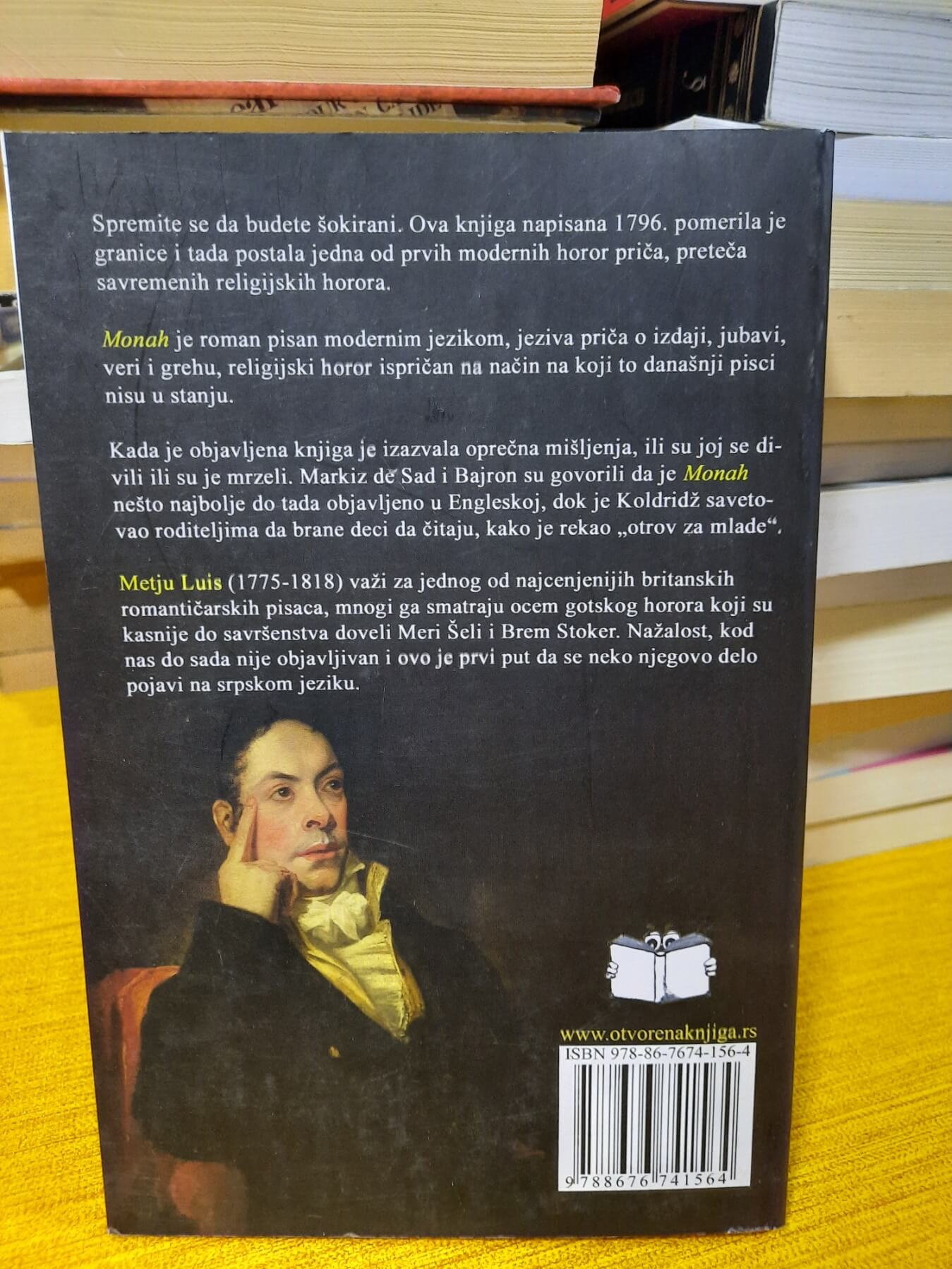 Monah je roman pisan modernim jezikom, jeziva priča o izdaji, ljubavi, veri i grehu, religijski horor ispričan na način na koji to današnji pisci nisu u stanju.