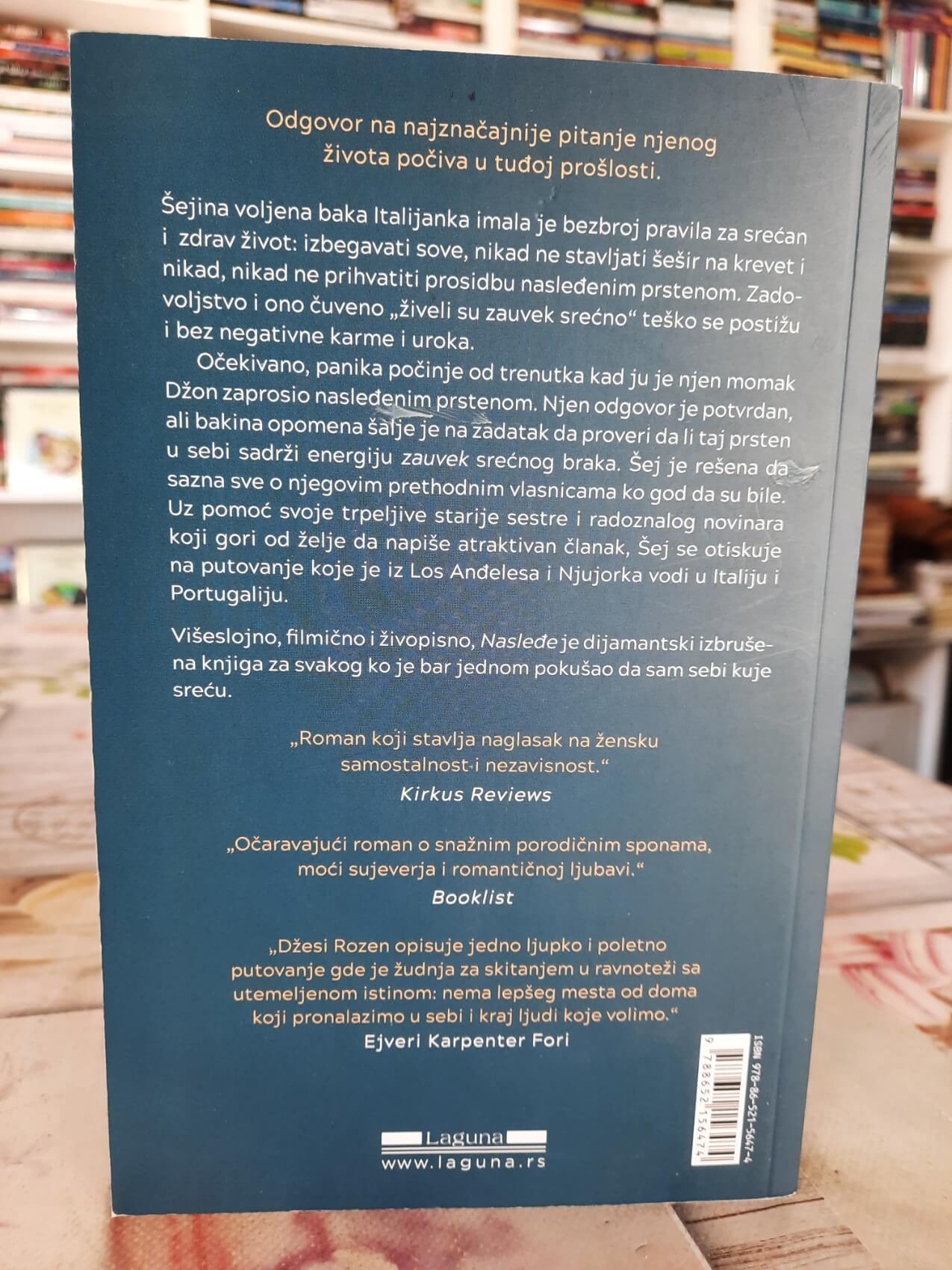 U romanu Nasleđe Džesi Rozen prati Šej, čija je baka ceo život verovala u pravila sreće, sudbine i porodičnog nasleđa. Kada prosidba sa nasleđenim prstenom pokrene nemir, priča se razvija u emotivan roman o ljubavi, porodičnim sponama i onome što nosimo iz kuće.