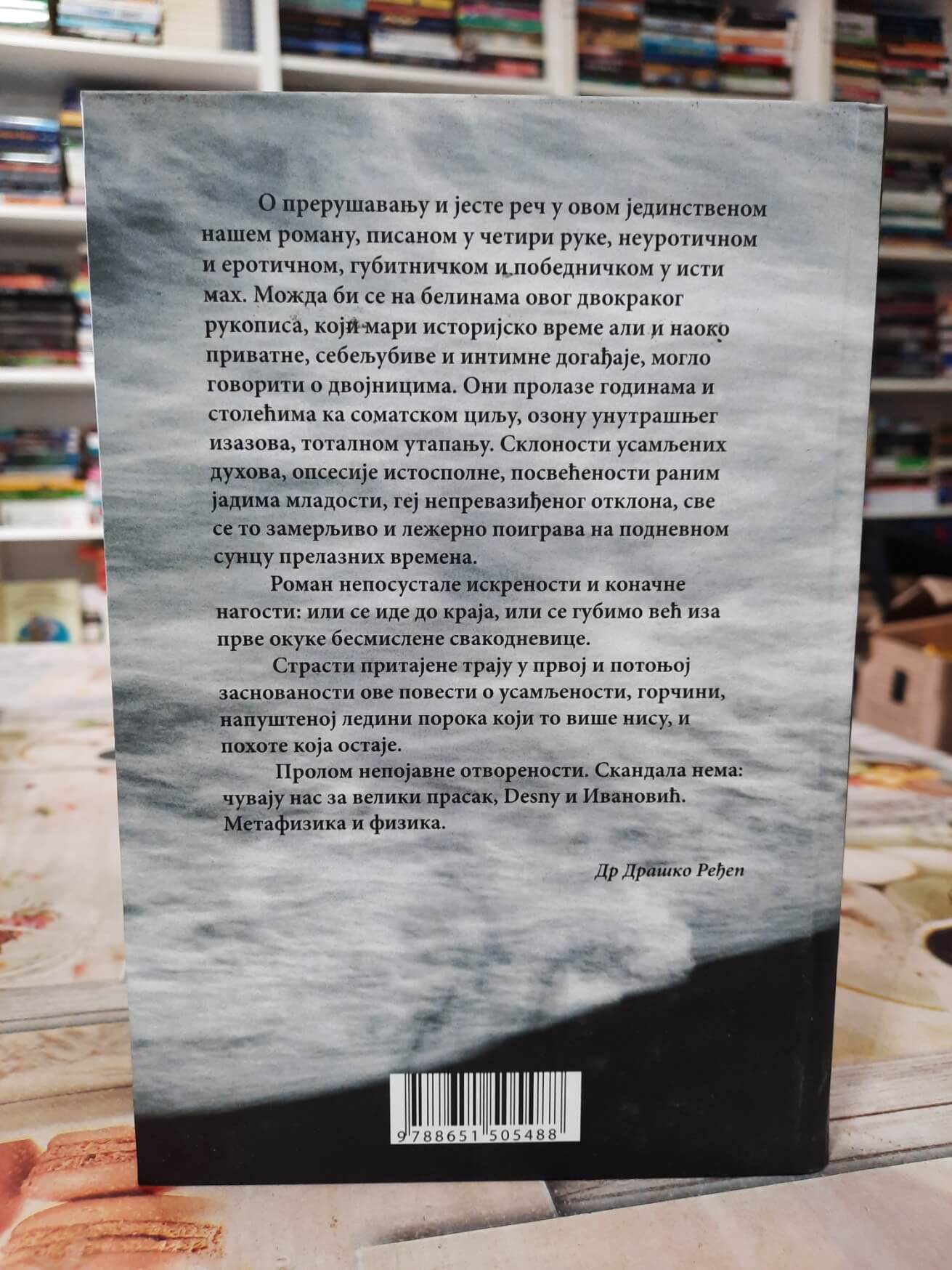 Opis: Roman pisan u četiri ruke koji se bavi temama prerušavanja, identiteta i unutrašnjih rascepa, smešten između intimnih i istorijskih slojeva iskustva. Kroz erotičan i introspektivan ton, priča prati usamljene likove opsednute sećanjima, strastima i mladalačkim ranama, dok se granice između gubitka i pobede, privatnog i javnog, stalno pomeraju. Delo postavlja pitanje da li je moguće ići do kraja u potrazi za sobom, ili se gubimo već u prvim okucima svakodnevice.