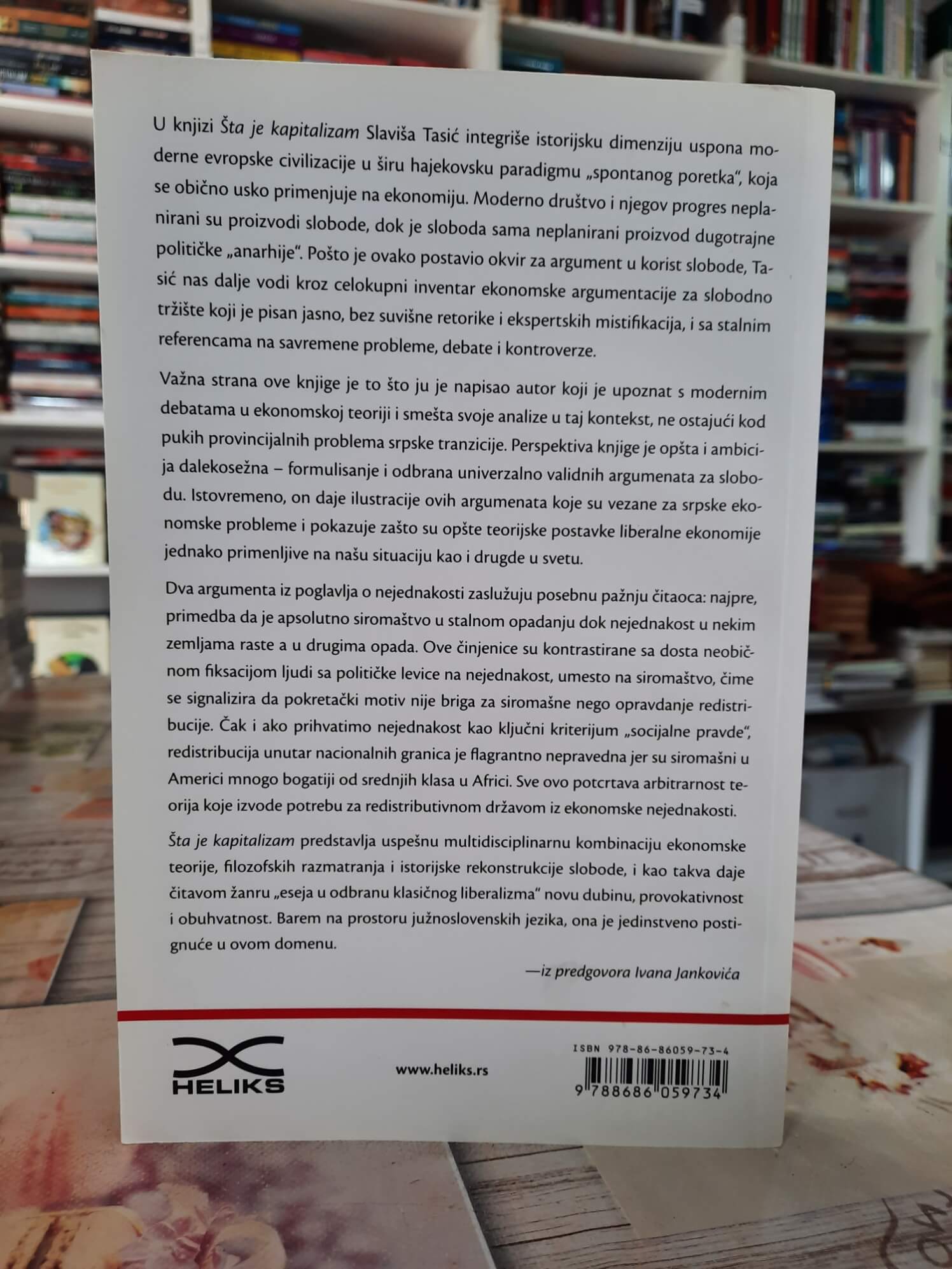 • Slaviša Tasić u ovoj knjizi objašnjava kapitalizam iz šire istorijske, političke i filozofske perspektive, oslanjajući se na ideju spontanog poretka i razvoja moderne evropske civilizacije. Umesto pojednostavljenih ideoloških rasprava, autor nudi argumentovano i pregledno objašnjenje slobode, društvenog razvoja i institucija koje su oblikovale savremeni svet. Knjiga je namenjena čitaocima koje zanimaju ekonomija, društvo i politička teorija.