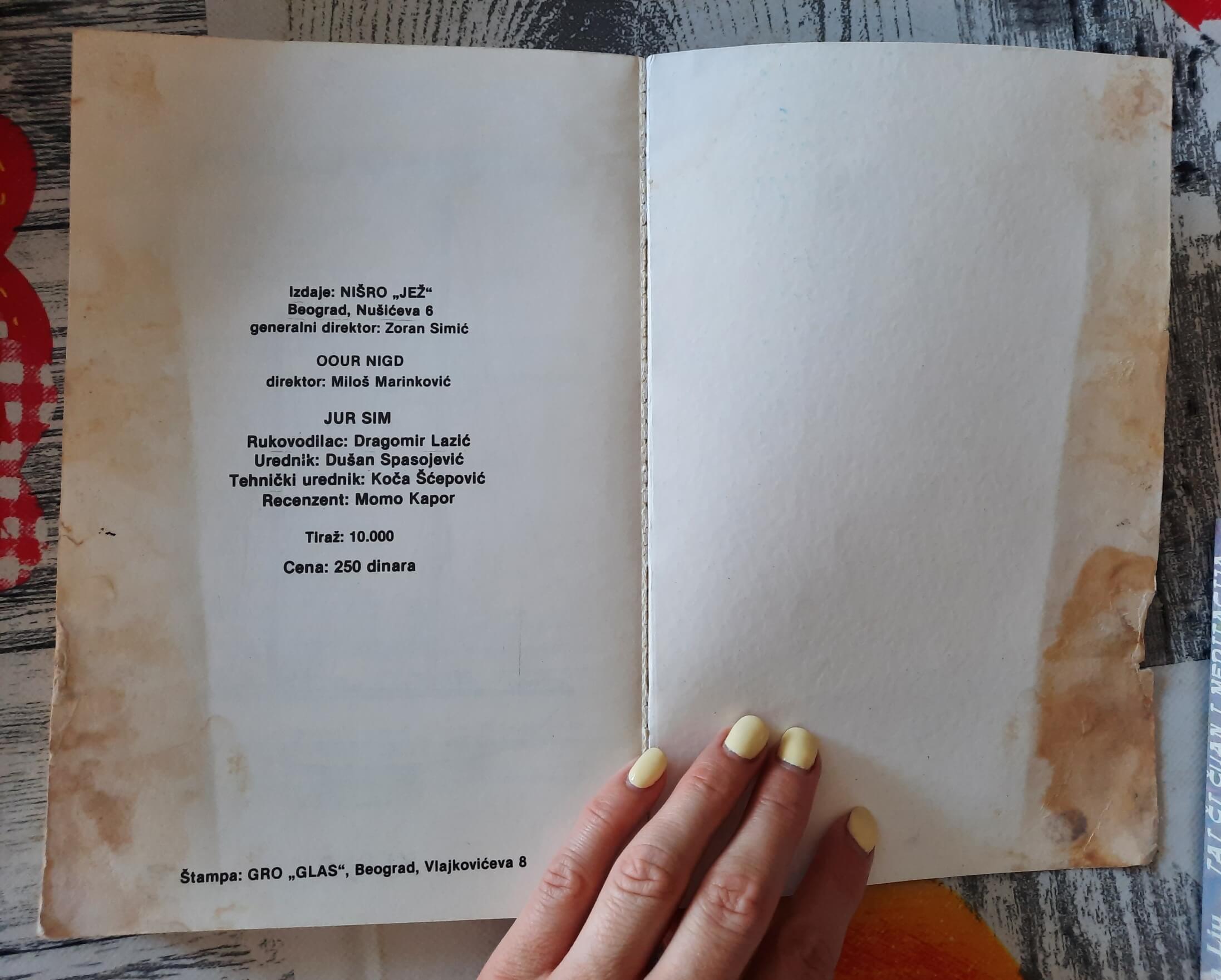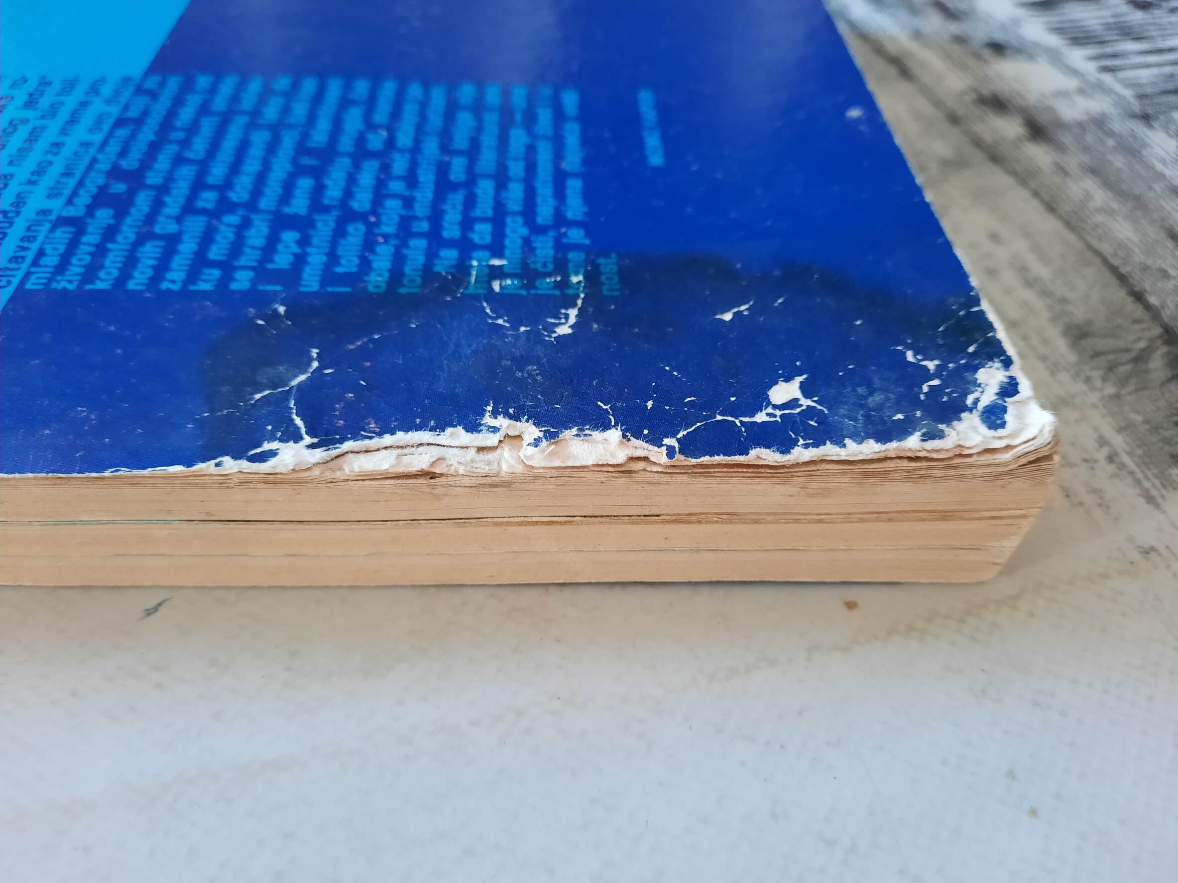 - Zadnjih nekoliko stranica i korica imaju fleke i oštećenja od delovanja neke tečnosti