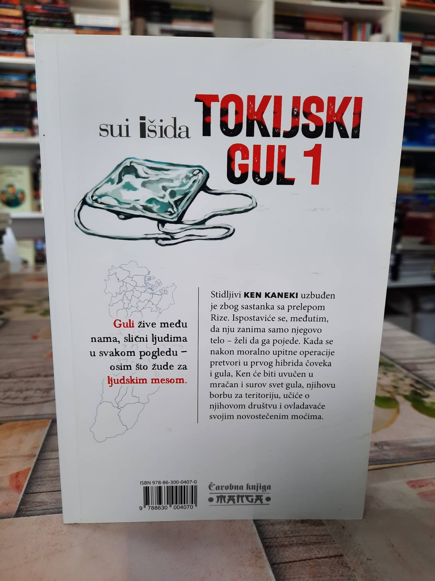 Prvi tom prati Kena Kanekija, stidljivog mladića koji posle kobnog susreta postaje hibrid čoveka i gula. Serijal spaja horor, akciju i identitetsku dramu u surovom urbanom okruženju.