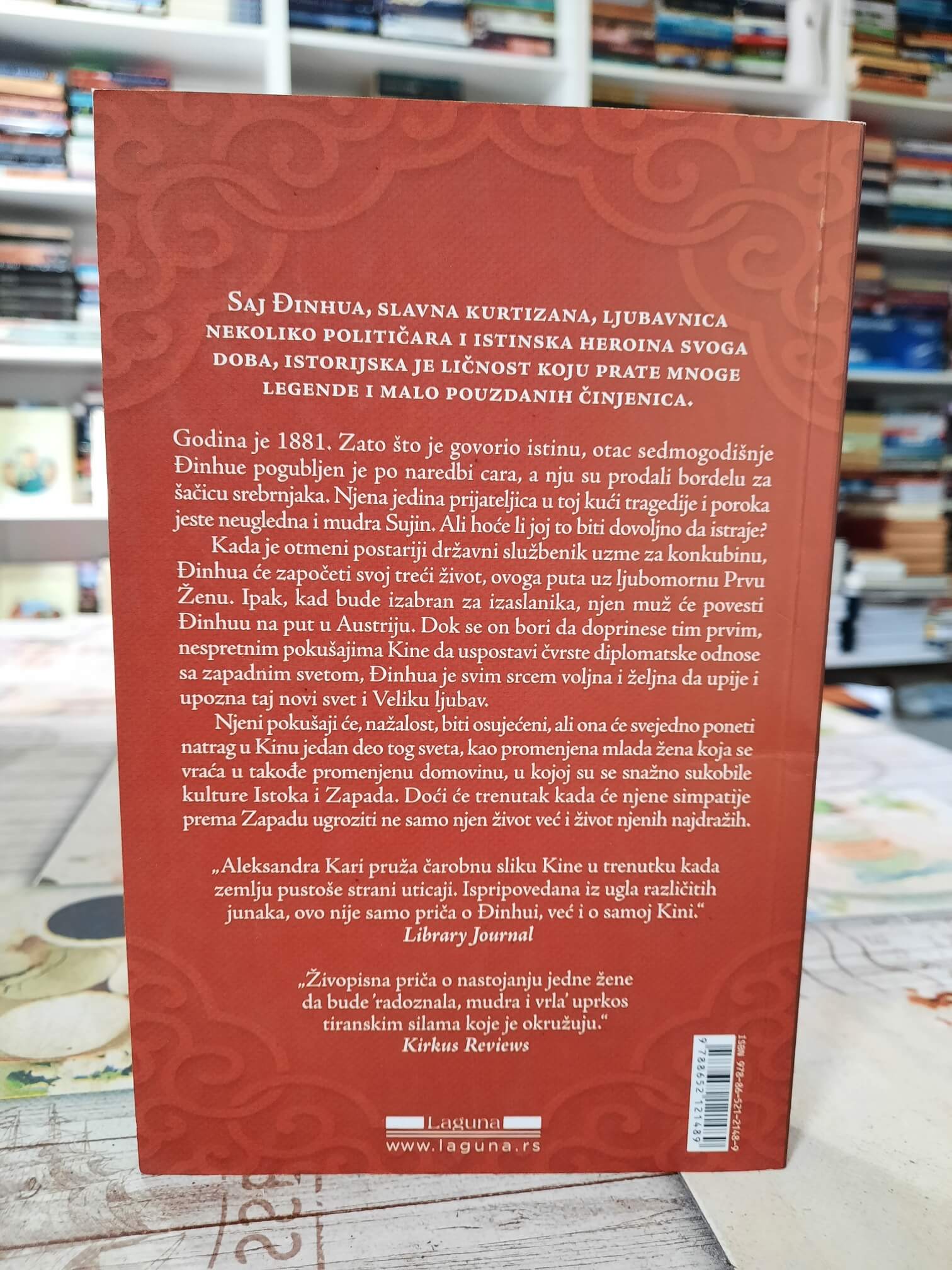 • Istorijski roman o Saj Đinhui, čuvenoj kineskoj kurtizani i ženi oko koje su ispletene brojne legende. Kroz njen život, od detinjstva obeleženog tragedijom do susreta sa svetom politike i Zapada, roman oslikava burno doba susreta Istoka i Zapada.