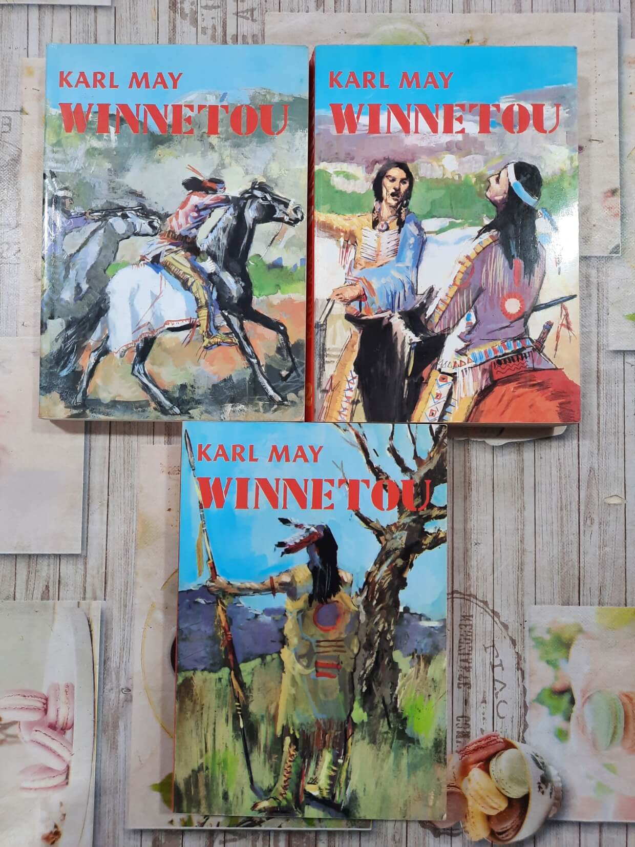 Klasična trilogija avanturističkih romana koja prati prijateljstvo između nemačkog doseljenika Old Šeterhenda i indijanskog poglavice Vinetua na američkom Divljem zapadu. Kroz niz pustolovina prikazane su borbe sa odmetnicima, sukobi sa kolonizatorima i idealizovana slika časti, prijateljstva i pravde.