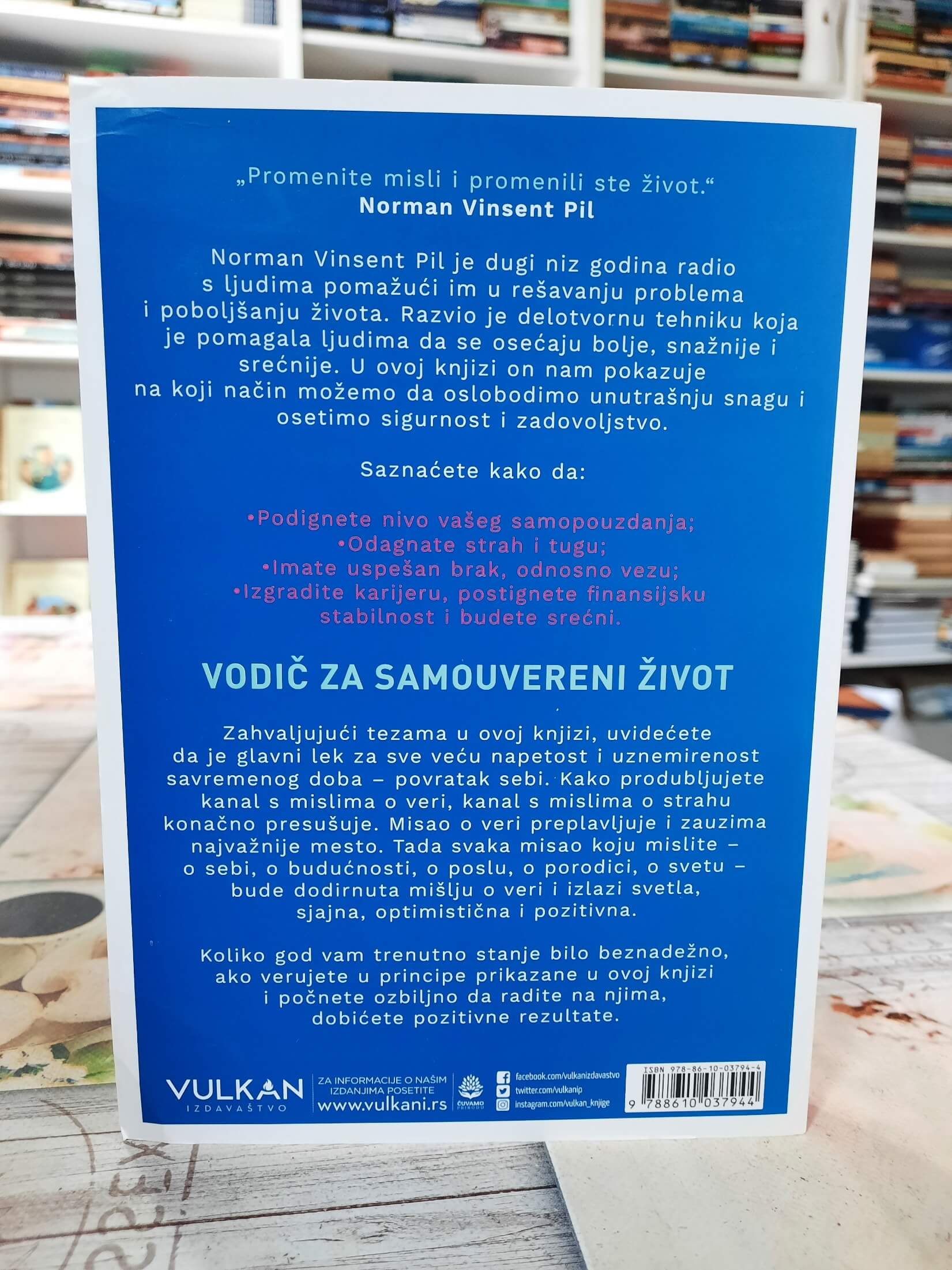 • Knjiga nastala iz dugogodišnjeg autorovog rada sa ljudima, usmerena na razvoj samopouzdanja, unutrašnje snage i sigurnijeg odnosa prema životu. Pil pokazuje kako promena misli i stava može pomoći da se lakše savladaju strahovi, nesigurnost i svakodnevni izazovi.