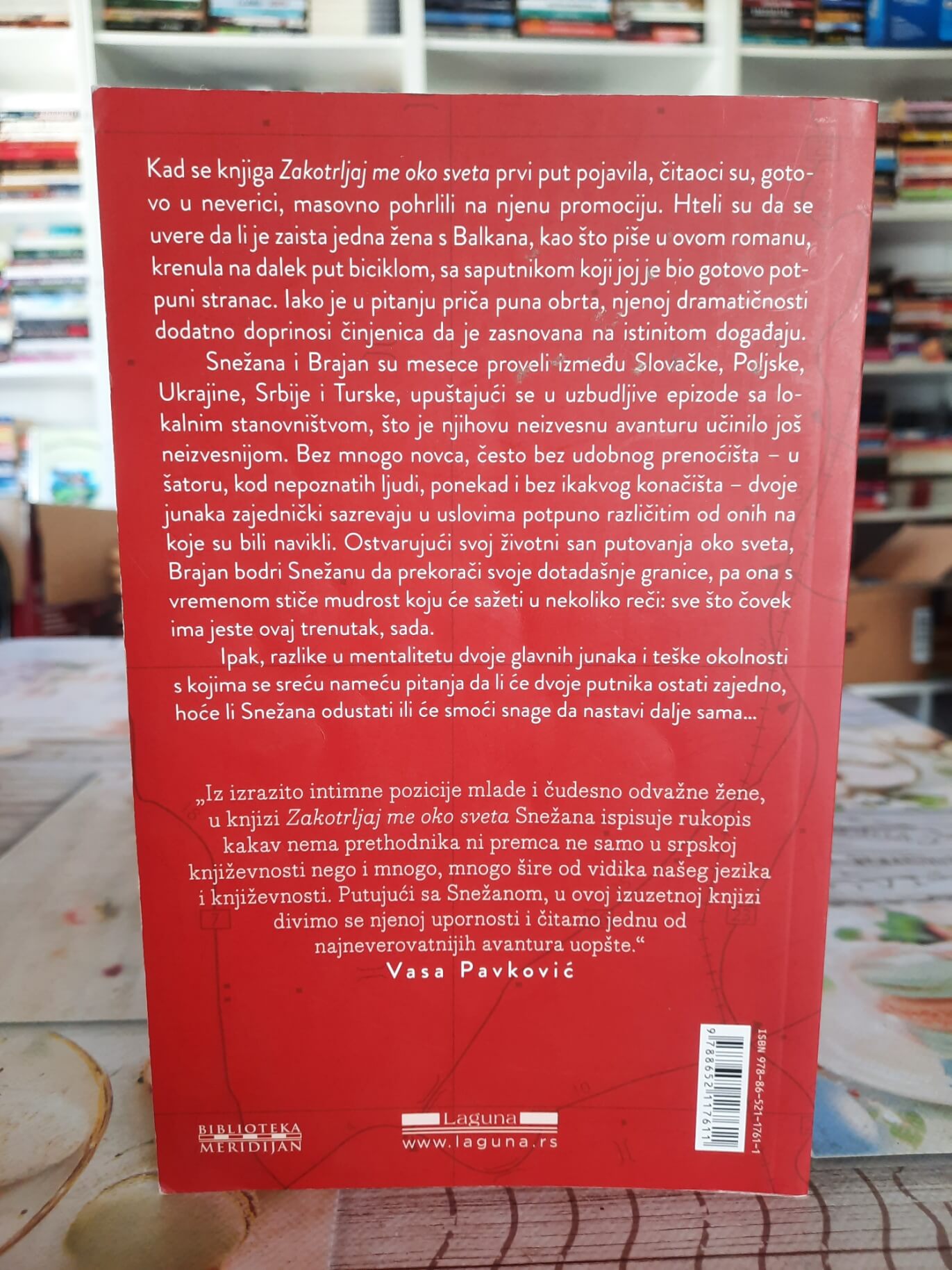 Zakotrljaj me oko sveta Snežane Radojičić je putopisno-avaturistička knjiga zasnovana na istinitom iskustvu autorke. U središtu priče je putovanje biciklom kroz različite zemlje, susreti sa ljudima, nepredviđene situacije i izazovi koje donosi život na putu. Knjiga spaja elemente putopisa, lične ispovesti i avanture, prateći autorkinu potragu za slobodom, smislom i drugačijim načinom života.Pored opisa predela, gradova i kultura, knjiga donosi i intimniji sloj priče, jer prikazuje odnose među saputnicima, unutrašnje dileme i snagu potrebnu da se istraje u neizvesnim okolnostima. Zbog toga ovo nije samo zapis o putovanju, već i knjiga o ličnoj hrabrosti, promeni i susretu sa svetom iz neposredne blizine. Izdavač je Laguna, a knjiga se vodi u žanru putopisa.