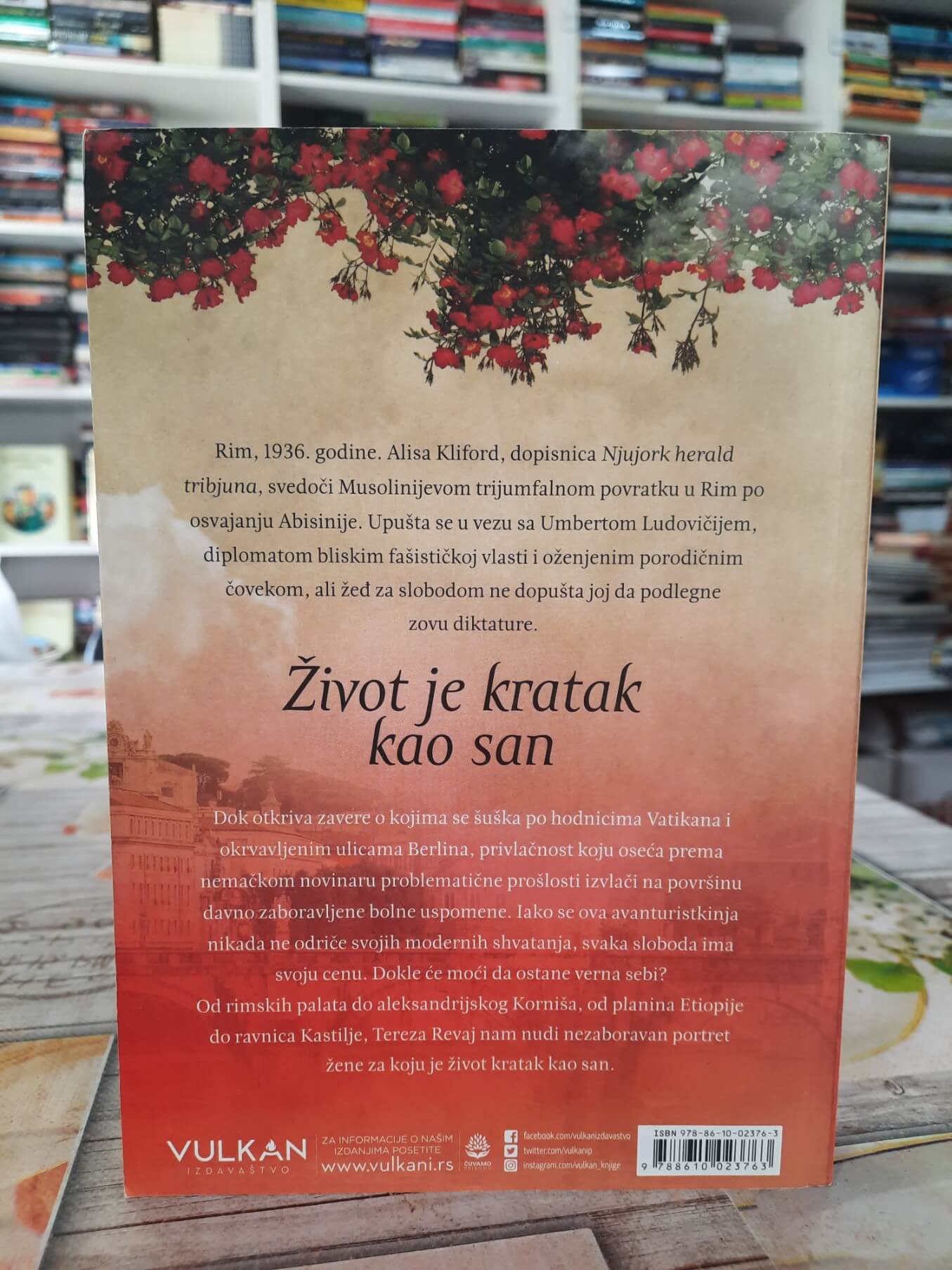 • Rim, 1936. godine. Alisa Kliford, novinarka Njujork Herald Tribjuna, prati Musolinijev povratak iz Abisinije i ulazi u vrtlog politike, strasti i opasnih veza. Dok se fašizam širi Evropom, ona pokušava da sačuva sopstvenu slobodu, a stara sećanja i nova osećanja uvlače je u priču o ljubavi, diktaturi i ličnoj hrabrosti. Tereza Revaj piše raskošno i emotivno, sa snažnom istorijskom pozadinom.